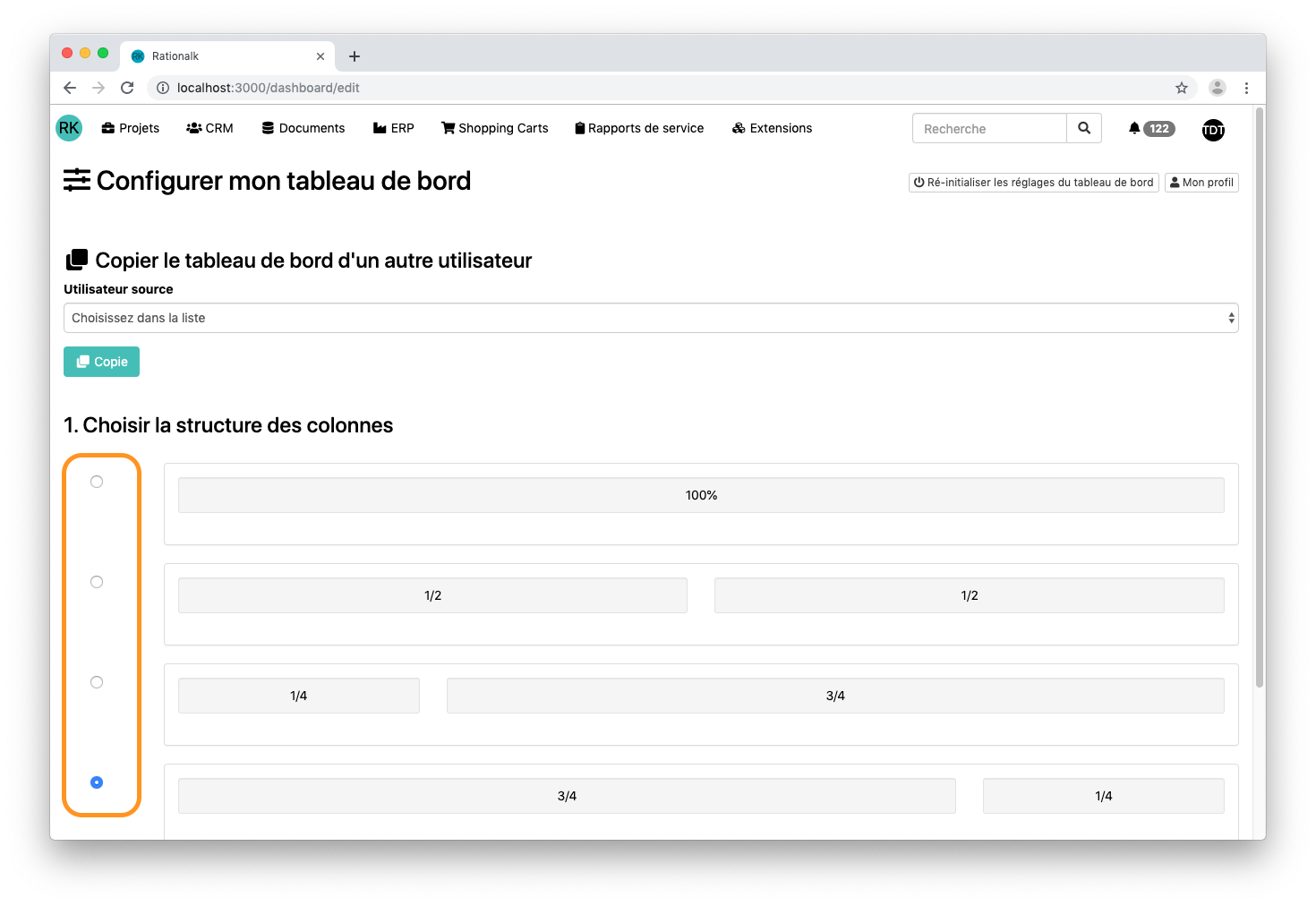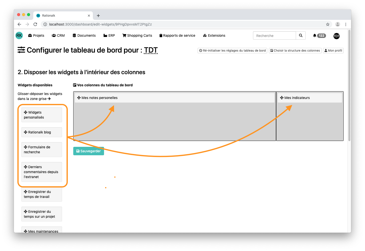 Pour configurer son dashboard (tableau de bord) et y disposer des widgets
